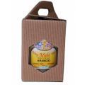 Pratica scatola realizzata in resistente cartoncino canneté color avana, ideale per il confezionamento di un singolo vaso da 1000 grammi di miele, confetture o altri alimenti. Dotata di manico robusto integrato, garantisce trasporto sicuro e presentazione raffinata del prodotto.